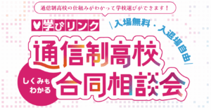 通信高校への新入学、転入学・編入学・不登校・やりたいことを発見するための進学合同相談会。通信制高校・技能連携校・サポート校などが参加しています。通信制高校の仕組みのわかる講演で疑問を解消して、学校との個別相談ができます。通信制高校選びが分かる体験談の他、メンタルカウンセリング、起立性調節障害、こども・若者総合相談なども同時開設。保護者お一人、ご夫婦、お子様とご一緒、家族連れ、友達同士など、お気軽に参加ください。